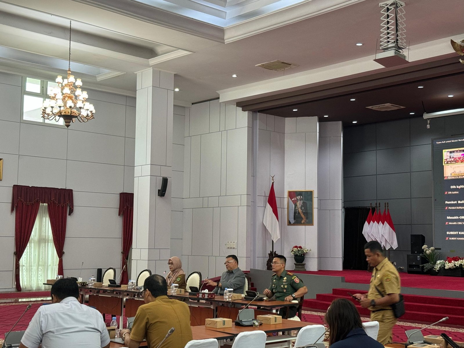 Rapat konsolidasi dipimpin oleh Sekretaris Daerah Provinsi Kaltim, Sri Wahyuni, didampingi oleh Direktur Ketahanan Pangan OIKN, Setia Lenggono, dan Sekretaris Daerah Kota Samarinda, Hero Mardanus Satyawan. Rapat ini juga dihadiri secara online oleh perwakilan kementerian dan lembaga terkait, bertempat di Pendopo Odah Etam Samarinda, pada Senin, 22 Juli 2024.