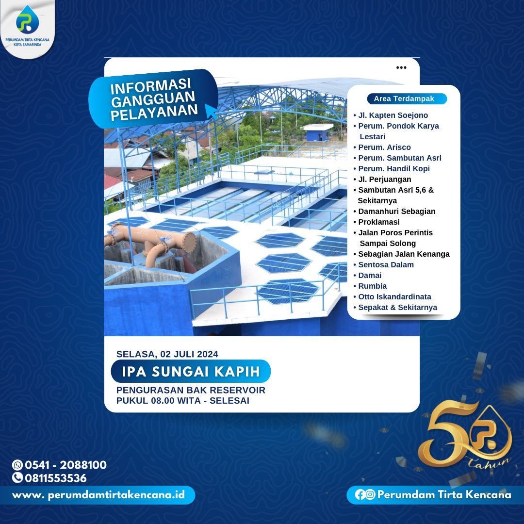 Kali ini giliran pengurasan pada IPA Sungai Kapih, Selasa (2/7/2024) besok.