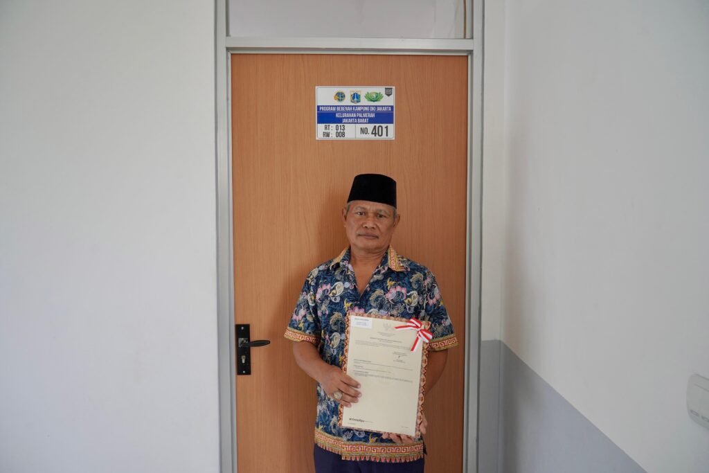 Ogin Akbar (28) yang sehari-hari bekerja sebagai pengemudi ojek online mengaku terkejut karena rumahnya dibangun megah meski berada di gang sempit. Sebagai generasi milenial, Ogin Akbar menyambut baik penerbitan Sertipikat Tanah Elektronik untuk program Konsolidasi Tanah Vertikal yang ia terima atas namanya sendiri.