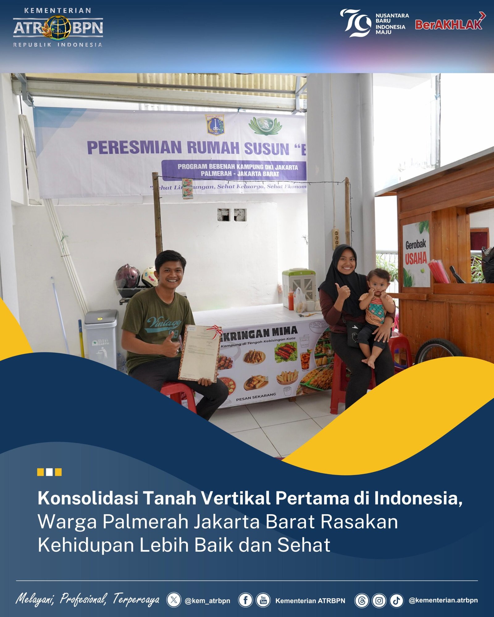 Jakarta, Cakrawalakaltim.com – Program Konsolidasi Tanah Vertikal pertama di Indonesia berhasil diwujudkan melalui kerja sama antara Kementerian Agraria dan Tata Ruang/Badan Pertanahan Nasional (ATR/BPN), khususnya Kantor Wilayah (Kanwil) BPN Provinsi DKI Jakarta bersama Pemerintah Provinsi (Pemprov) DKI Jakarta dan Yayasan Buddha Tzu Chi. Sejak Juli 2024, sebanyak sembilan kepala keluarga (KK) telah menempati rumah susun di kawasan padat penduduk, yaitu Kelurahan Palmerah, Jakarta Barat.