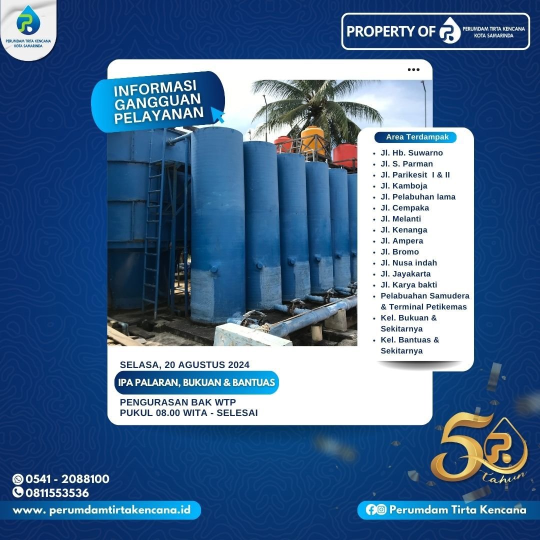 Ia juga menambahkan bahwa Perumdam berupaya untuk menyelesaikan pekerjaan pengurasan secepat mungkin agar distribusi air kembali normal. Untuk informasi lebih lanjut atau pelaporan, pelanggan dapat menghubungi hotline 0541-2088100 atau WhatsApp di 0811553536.