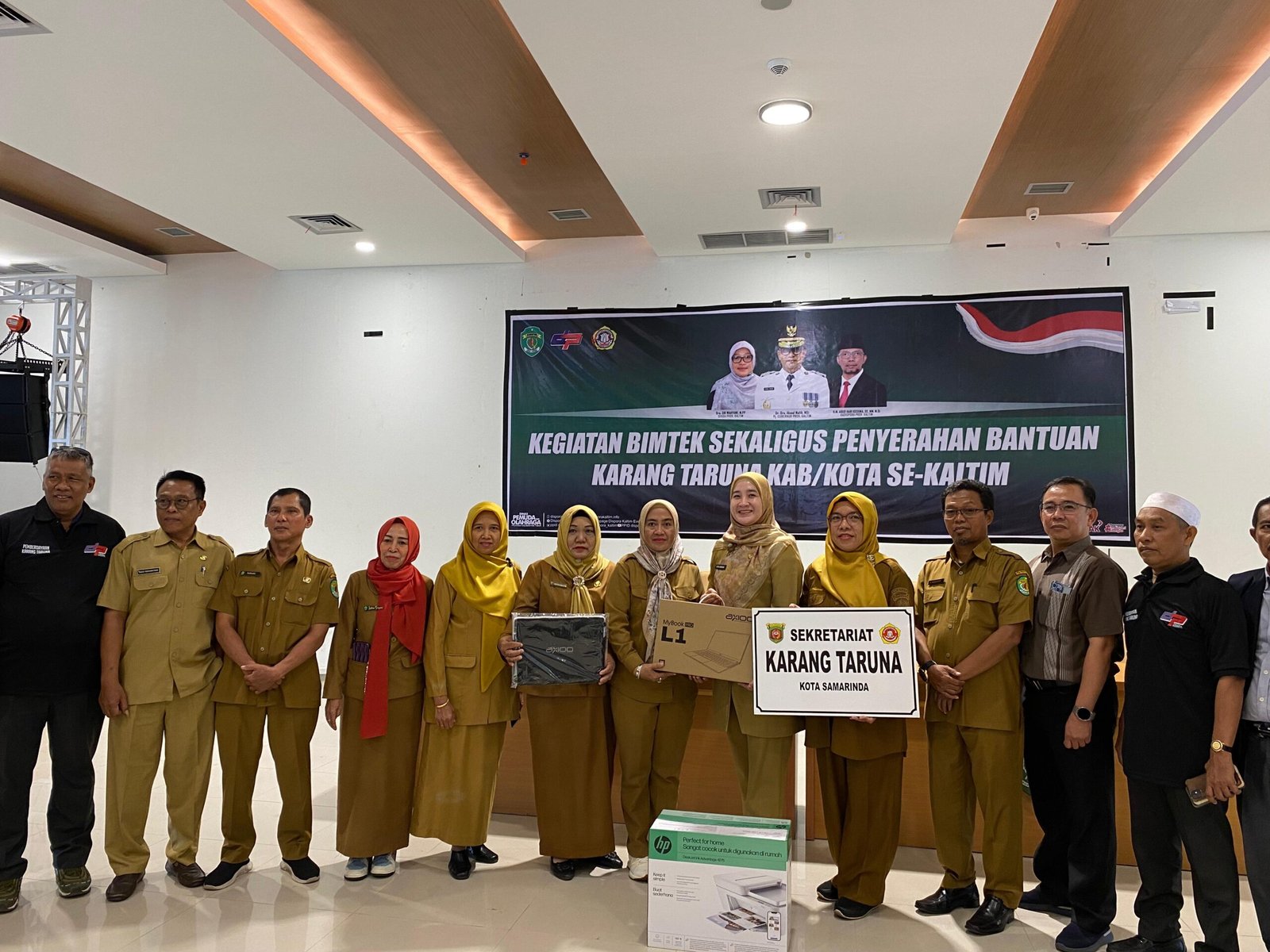 Bantuan laptop dan printer diserahkan langsung oleh Plh Kepala Dispora Kaltim, Sri Wartini. Ia mengatakan, bantuan ini dalam rangka untuk menghidupkan kembali Karang Taruna.