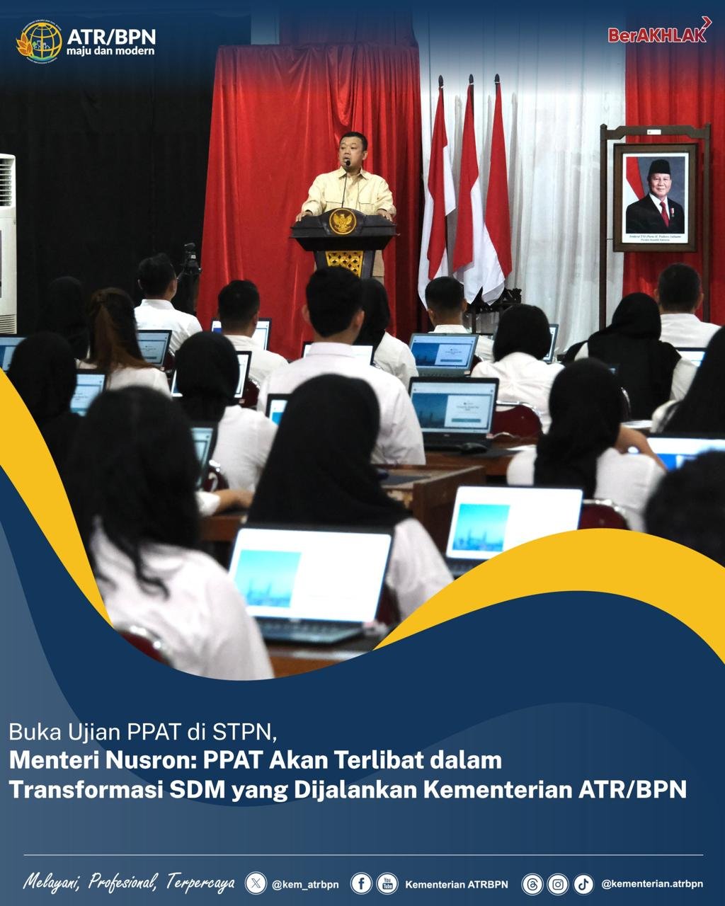 D. I. Yogyakarta, Cakrawalakaltim.com – Saat membuka ujian Pejabat Pembuat Akta Tanah (PPAT) pada Selasa (17/12/2024), Menteri Agraria dan Tata Ruang/Kepala Badan Pertanahan Nasional (ATR/BPN), Nusron Wahid menyebut PPAT yang nantinya lulus akan menjadi bagian dari transformasi layanan pertanahan Kementerian ATR/BPN. Ia menjelaskan, ada dua transformasi yang dilakukan, yakni sistem dan sumber daya manusia (SDM).