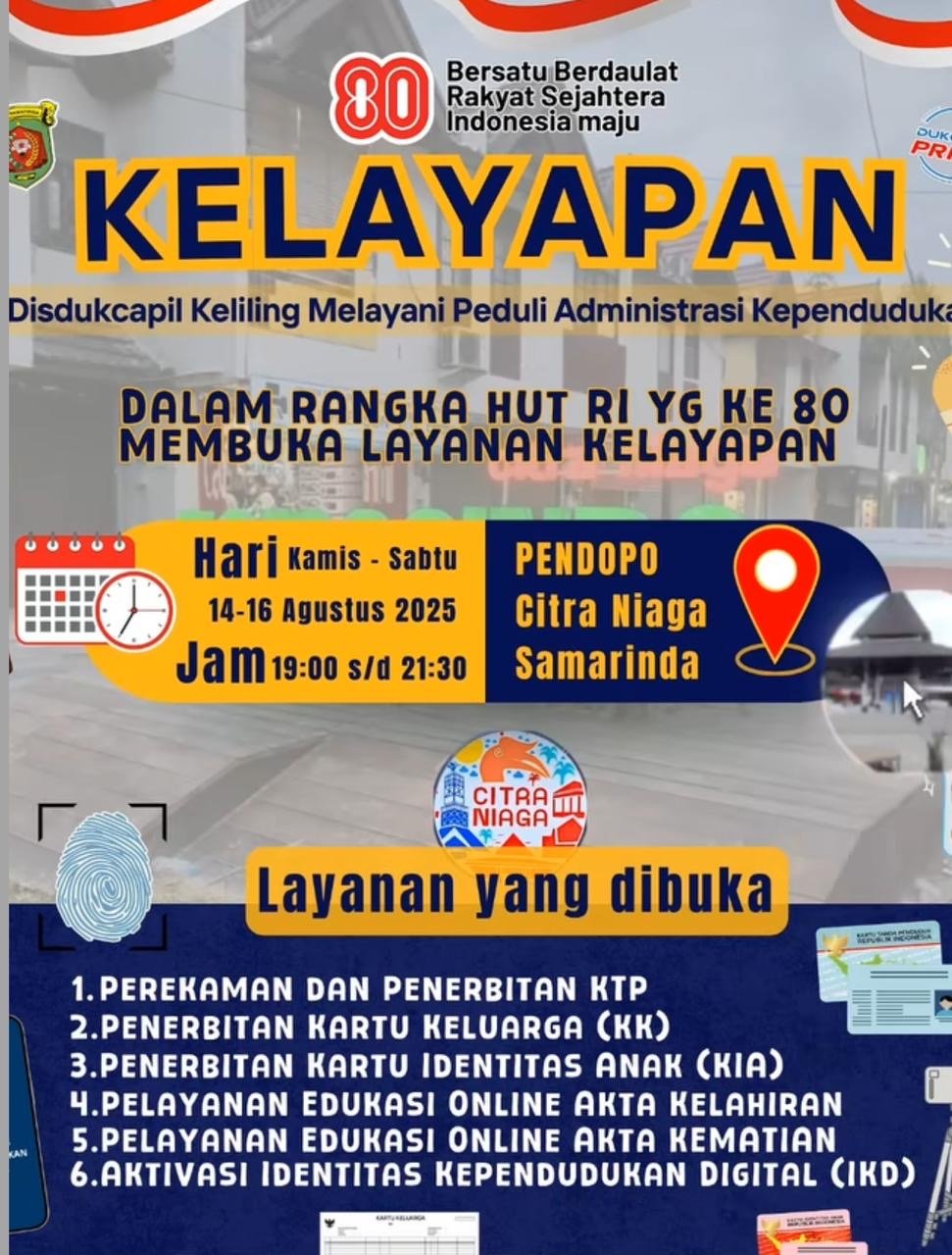 Sebagai ajakan, Disdukcapil Samarinda mengimbau masyarakat untuk memanfaatkan momentum ini dengan datang langsung ke Pendopo Citra Niaga pada tanggal pelaksanaan.