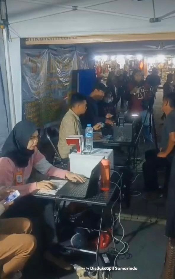 SAMARINDA, Cakrawalakaltim.con — Antusiasme warga memadati kawasan Citra Niaga Samarinda saat kegiatan KELAYAPAN (Disdukcapil Keliling Melayani Peduli Administrasi Kependudukan) digelar. Layanan yang dibuka mulai malam hari itu menjadi magnet baru bagi masyarakat yang ingin mengurus dokumen kependudukan sambil menikmati suasana santai di kawasan kuliner kota.