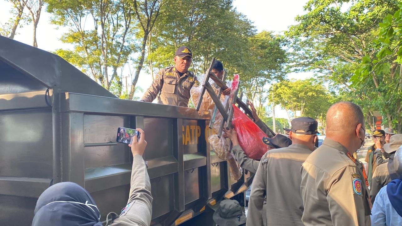 Dari hasil operasi tersebut, petugas mengamankan total enam lapak pedagang yang melanggar aturan. Satu lapak ditertibkan di Jalan KH Samanhudi, empat lapak di depan Islamic Center, dan satu lapak di belakangnya. Sejumlah barang bukti (BB) juga ikut diamankan dari lokasi.
