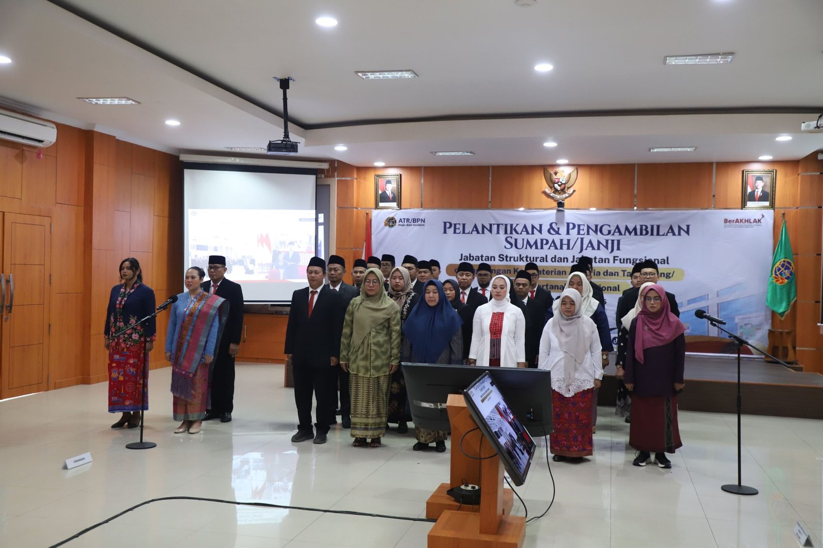Kegiatan tersebut dihadiri oleh Kepala Kantor Wilayah BPN Provinsi Kalimantan Timur beserta sejumlah pejabat administrator di lingkungan Kanwil BPN Provinsi Kaltim, serta diikuti oleh 31 orang pejabat pengawas yang dilantik dan diambil sumpah jabatannya.