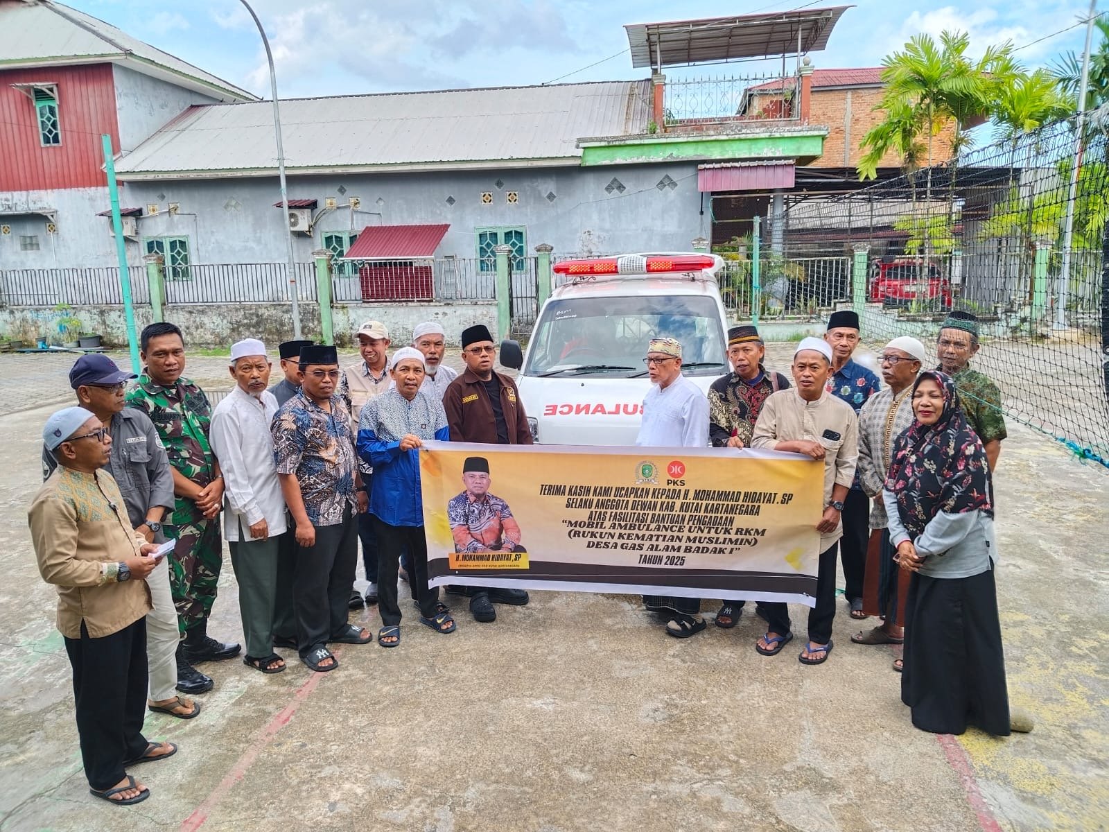 KUKAR, Cakrawalakaltim.com – Rukun Kematian Muslim (RKM) Desa Gas Alam, Kecamatan Muara Badak, Kabupaten Kutai Kartanegara, menerima bantuan satu unit mobil ambulans dari Anggota DPRD Kukar Komisi I Fraksi PKS, H. Moch. Hidayat, SP. Penyerahan dilakukan pada Jumat (19/12/2025) pukul 14.00 Wita, bertempat di Langgar Babussalam, Desa Gas Alam.