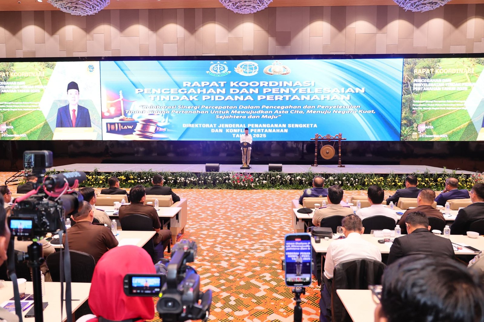 “Pemberantasan mafia tanah hanya bisa dilakukan dengan dua pendekatan. Pertama, ketegasan APH. Tangkap dan gunakan pasal yang benar tepat, tidak bisa dibantah atau dimanipulasi. Kedua, Teman-teman di ATR/BPN jangan sampai terlibat menjadi bagian ekosistem mafia tersebut,” tegas Menteri Nusron dalam Rakor yang berlangsung di Jakarta, Rabu (03/12/2025).