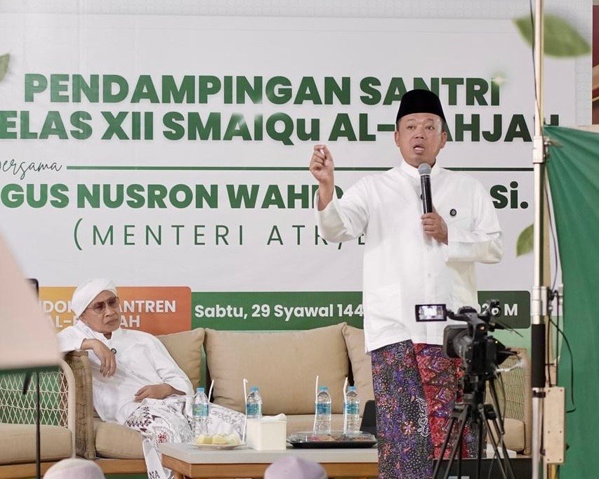 Cirebon, Cakrawalakaltim.com – Menteri Agraria dan Tata Ruang/Kepala Badan Pertanahan Nasional (ATR/BPN), Nusron Wahid, memotivasi santri di Pondok Pesantren Al-Bahjah untuk mengambil peran dalam pembangunan bangsa, khususnya melalui penguasaan ilmu pengetahuan dan teknologi. Dalam sambutannya di kegiatan Pendampingan Santri Kelas XII SMAIQu Al-Bahjah, Sabtu (18/04/2026), Menteri Nusron mengatakan bahwa selain menjadi kader ulama, santri juga berpeluang untuk berkontribusi sebagai pelaksana kebijakan negara.